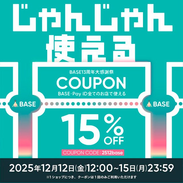 【12/12~15】15%オフクーポンセールのお知らせ【BASE感謝祭】