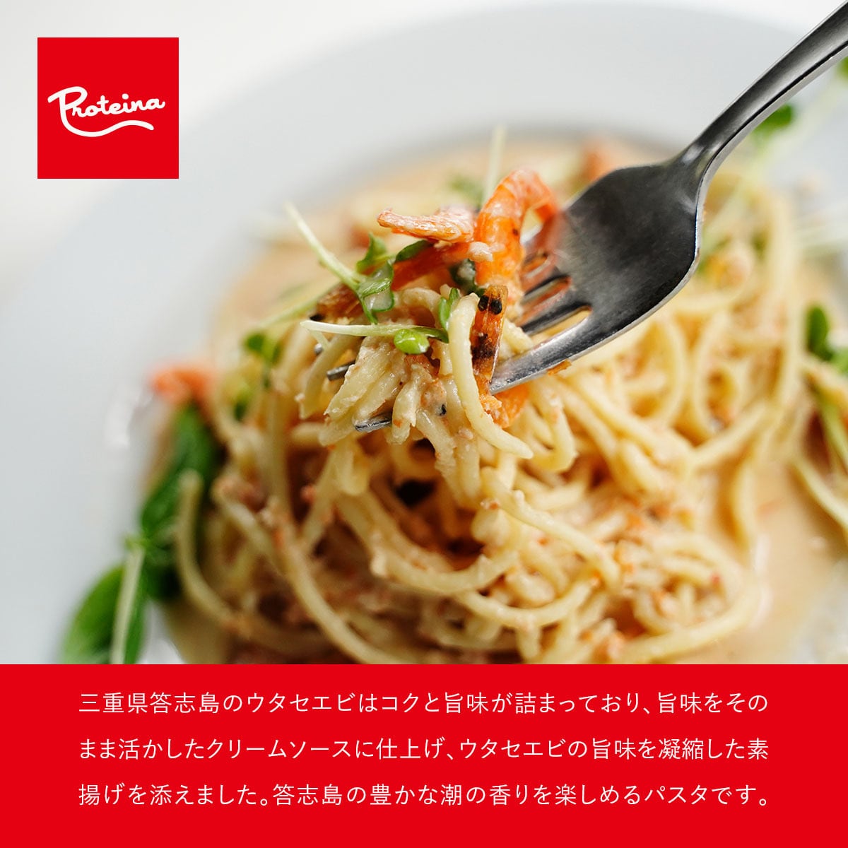 ウタセエビのクリームソース & ホエイ生パスタ 【ソース&パスタセット】 1人前 ホエイで栄養豊富&モチモチ食感 - 答志島うたせえび 冷凍パスタ 冷凍食品 プロテイーナ
